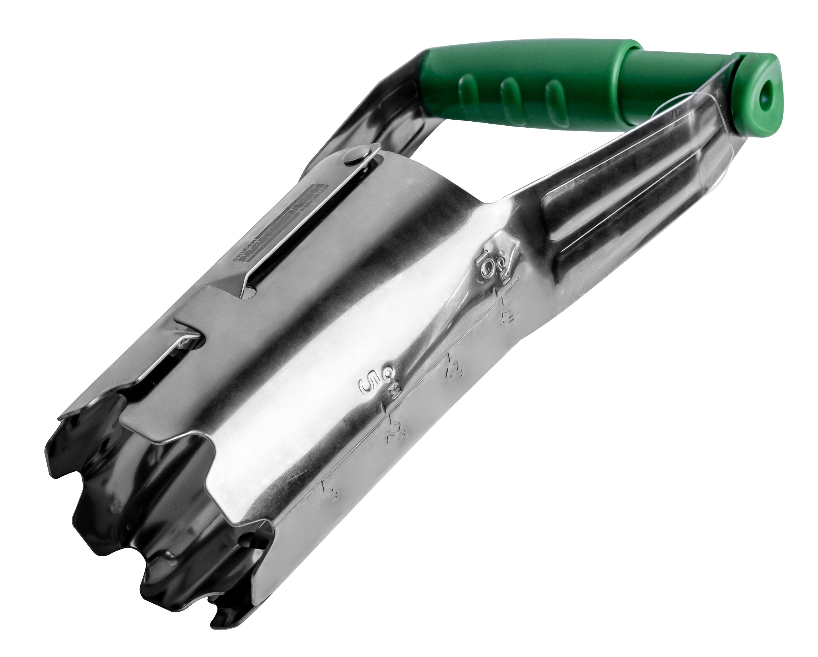 Le pot à bulbes de Brüder Mannesmann est idéal pour les boules de plantes et les bulbes de fleurs jusqu'à ⌀ 6 cm. Fabriqué en acier inoxydable, il dispose d'une échelle de profondeur allant jusqu'à 10 cm et d'une poignée en plastique avec automatique d'une seule main pour une ouverture et une fermeture rapides.